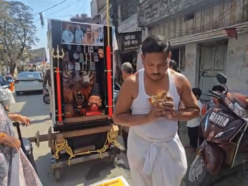 छत्तीसगढ़ के रायगढ़ में एक कोसा साड़ी व्यापारी के करीब डेढ़ करोड़ रुपए बाजार में अलग-अलग दुकानदारों के पास फंसे हुए हैं। पैसे वापस नहीं मिलने से परेशान व्यापारी ने अनोखा विरोध प्रदर्शन शुरू किया है। वह देनदारों और भगवान की तस्वीरें रथ में लगाकर दंडवत यात्रा कर रहा है। पत्नी और परिवार के साथ देवी मंदिरों में मत्था टेककर वह अपनी उधारी की रकम वापस दिलाने की प्रार्थना कर रहा है। व्यापारी मनोज देवांगन का आरोप है कि इस मामले में उसकी FIR थाने में दर्ज नहीं की गई। व्यापारी ने बताया कि वह मां काली के मंदिर गया था, जहां उसे सपने में देवी के दर्शन हुए। उसके मुताबिक, मां काली ने कहा कि उसकी मनोकामना पूरी होगी, लेकिन उसे उनके बताए मार्ग पर चलना होगा। इसी आस्था के चलते वह दंडवत यात्रा कर रहा है। व्यापारी का कहना है कि इतनी बड़ी रकम फंस जाने से वह मानसिक और आर्थिक रूप से बुरी तरह टूट चुका है। उसके पिता को हार्ट अटैक आ चुका है और इलाज के लिए उसे मदद मांगनी पड़ी। इसके बावजूद देनदारों ने भुगतान करने से इनकार कर दिया। बुधवार को मनोज देवांगन अपने परिवार के साथ एसपी ऑफिस पहुंचा। मामले में शिकायत की है। एएसपी ने आश्वासन दिया गया है कि जिन लोगों से लेनदेन है, उन व्यापारियों को बुलाया जाएगा और जांच के बाद आगे की कार्रवाई की जाएगी। पहले देखिए ये तस्वीरें… व्यापारी की कहानी उसी की जुबानी पढ़िए दरअसल, कोसा साड़ी के थोक व्यापारी मनोज देवांगन (36) का कहना है कि, मैं पिछले 10-12 साल से कोसा साड़ियों का थोक व्यापार कर रहा हूं। रायगढ़ समेत कई जगहों से करीब 100 व्यापारी उनके पास से कैश और उधार में साड़ियां लेकर व्यापार करते हैं। वो समय-समय पर पैसा भी दे देते हैं। लेकिन रायगढ़ के 6 देवांगन समाज के व्यापारी हैं। जिन्होंने साड़ियां उधार ली थी। अब वो लोग मेरी तरक्की देखकर पैसा रोक दिए हैं। जिनकी कुल बकाया राशि करीब डेढ़ करोड़ रुपए है। जबकि मैं जीएसटी देकर व्यापार करता हूं। कानूनी एक्शन लूंगा कहता हूं तो कानून को खरीद लेंगे कहते हैं। कई बार रुपए मांगने के बावजूद अब ये व्यापारी भुगतान करने से आनाकानी कर रहे हैं। पिता को आ चुका है हार्ट अटैक पीड़ित व्यापारी ने बताया कि पिछले करीब डेढ़ महीने पहले जब मेरे पिता को हार्ट अटैक आया, तब भी उन व्यापारियों से इलाज के लिए रुपए मांगे, लेकिन उन्होंने देने से मना कर दिया। व्यापारियों ने कहा कि, तुम्हारे पिता को अटैक आया है, तो उसका ठेका हमने नहीं ले रखा है। हमारा जब मन होगा, तब पैसा देंगे, वरना नहीं देंगे। इस दौरान मुझे भीख तक मांगनी पड़ गई। कारोबार में मेरे घर की पूंजी है। बैंक लोन भी लगा है। जिसका ब्याज भी मुझे देना पड़ता है। इसलिए काफी परेशान हूं। थाने में नहीं लिखी गई FIR, नोटिस बेअसर मनोज ने