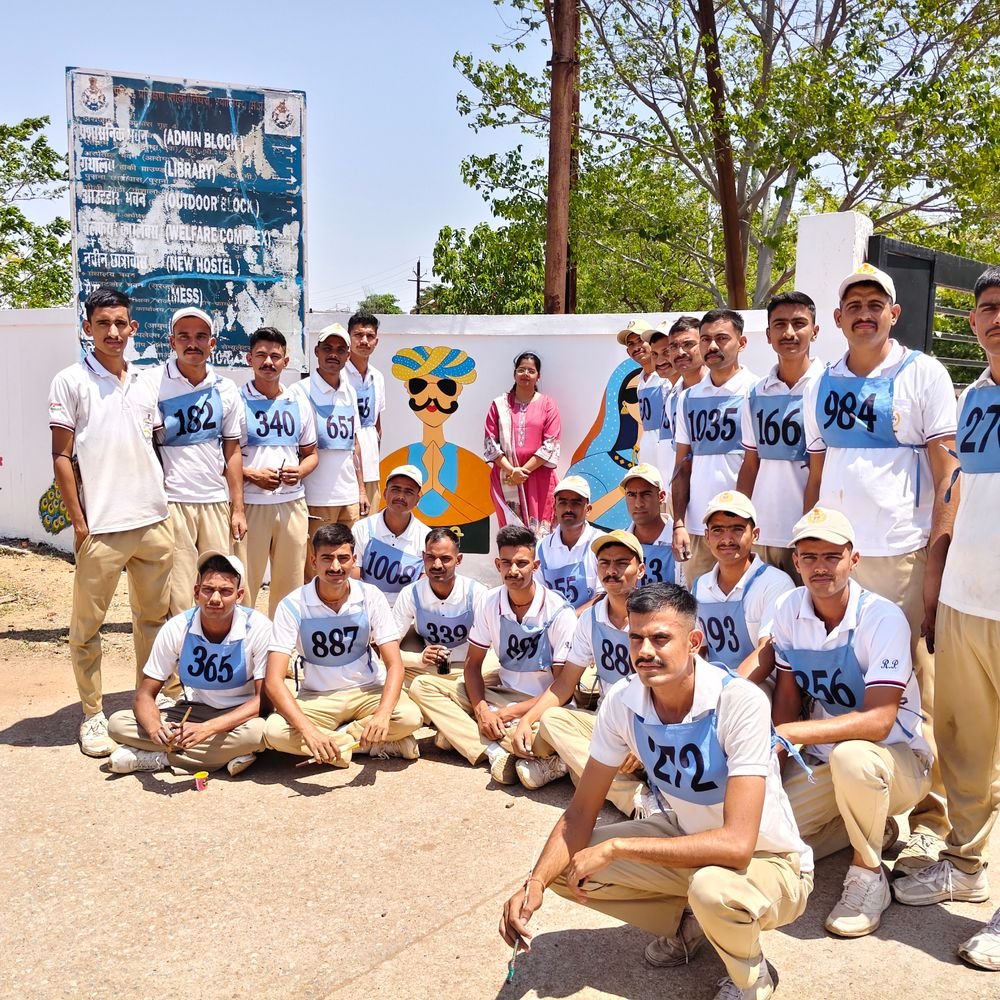 ग्वालियर में PTS परिसर की दीवारें बन गई कैनवास:25 आरक्षक कर रहे दीवारों पर चित्रकारी; राजस्थान से ट्रेनिंग लेने आया है 1020 नवआरक्षकों का बैच