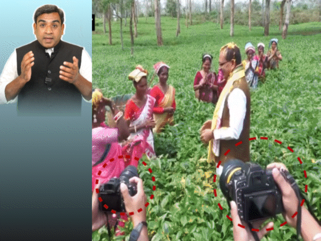 चाय बागान में शिवराज की रील, कई कैमरों से शूटिंग:सिंधिया ने मंत्रियों और अधिकारियों को दौड़ाया; भाषण के दौरान लटक गया मंत्री का माइक