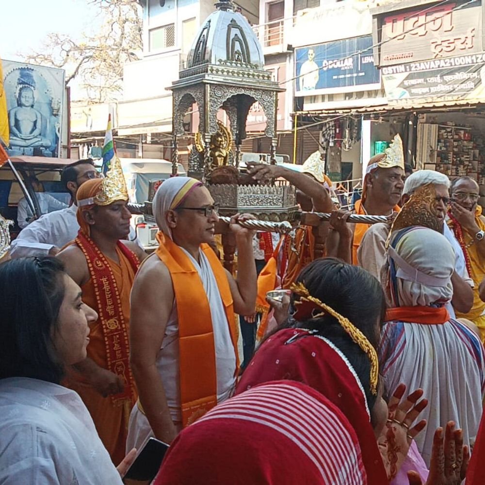Homeमध्यप्रदेशजैन समाज ने ढोल-नगाड़ों के साथ निकाली शोभायात्रा:भगवान महावीर जयंती पर महिलाएं...