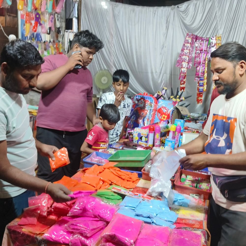 नीनीमच के बाजारों में होली की भारी रौनक:हर्बल गुलाल और टैंक वाली पिचकारियों की मांग; देर रात तक हुई खरीदारी