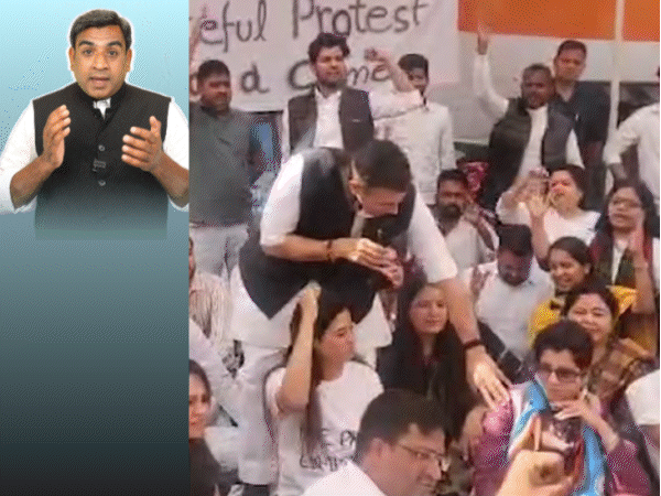 मध्य प्रदेश कांग्रेस अध्यक्ष जीतू पटवारी अमेरिका के साथ हुई ट्रेड डील के खिलाफ दिल्ली में हुए प्रदर्शन में शामिल हुए। जब वे प्रदर्शन को संबोधित कर रहे थे, उस दौरान एक रोचक नजारा देखने को मिला। जीतू पटवारी ‘नरेंद्र-सरेंडर’ का नारा लगवा रहे थे। वहां मौजूद सभी लोग नारे लगा रहे थे, लेकिन वहीं बैठीं कांग्रेस सांसद कुमारी शैलजा चुप बैठी रहीं। इस पर जीतू पटवारी ने नारे लगवाते हुए ही उन्हें हाथ लगाकर टोका और नारा लगाने को कहा। अचानक इस तरह टोकने पर कुमारी शैलजा चौंक गईं। उन्होंने जीतू पटवारी से कुछ कहा, लेकिन फिर मुस्कुराते हुए नारे लगाने लगीं। बाद में उन्होंने सिर पर हाथ रखते हुए पास बैठे इंदौर कांग्रेस के जिला अध्यक्ष विपिन वानखेड़े से कुछ कहा। इस वाकये पर प्रदर्शन कर रहे सभी लोग ठहाके लगाने लगे। पंडित धीरेंद्र शास्त्री का ऐलान, जल्द करेंगे शादी