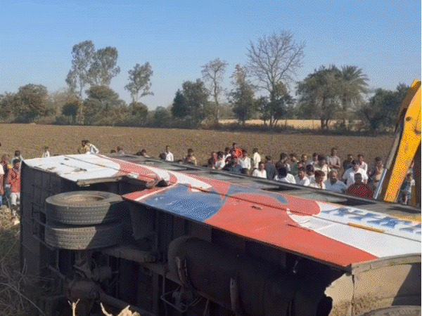Homeमध्यप्रदेशबस पलटने से बुजुर्ग की मौत, 15 यात्री घायल:सभी को अस्पताल पहुंचाया,...