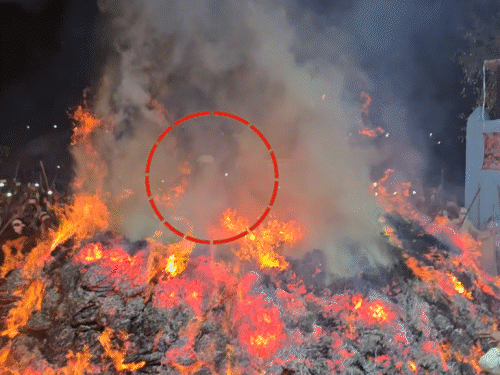 मथुरा में जलती होलिका से निकला पंडा, VIDEO:25 फीट ऊंची धधकती लपटें, शरीर बिल्कुल झुलसा नहीं; विदेशी देखकर हैरान